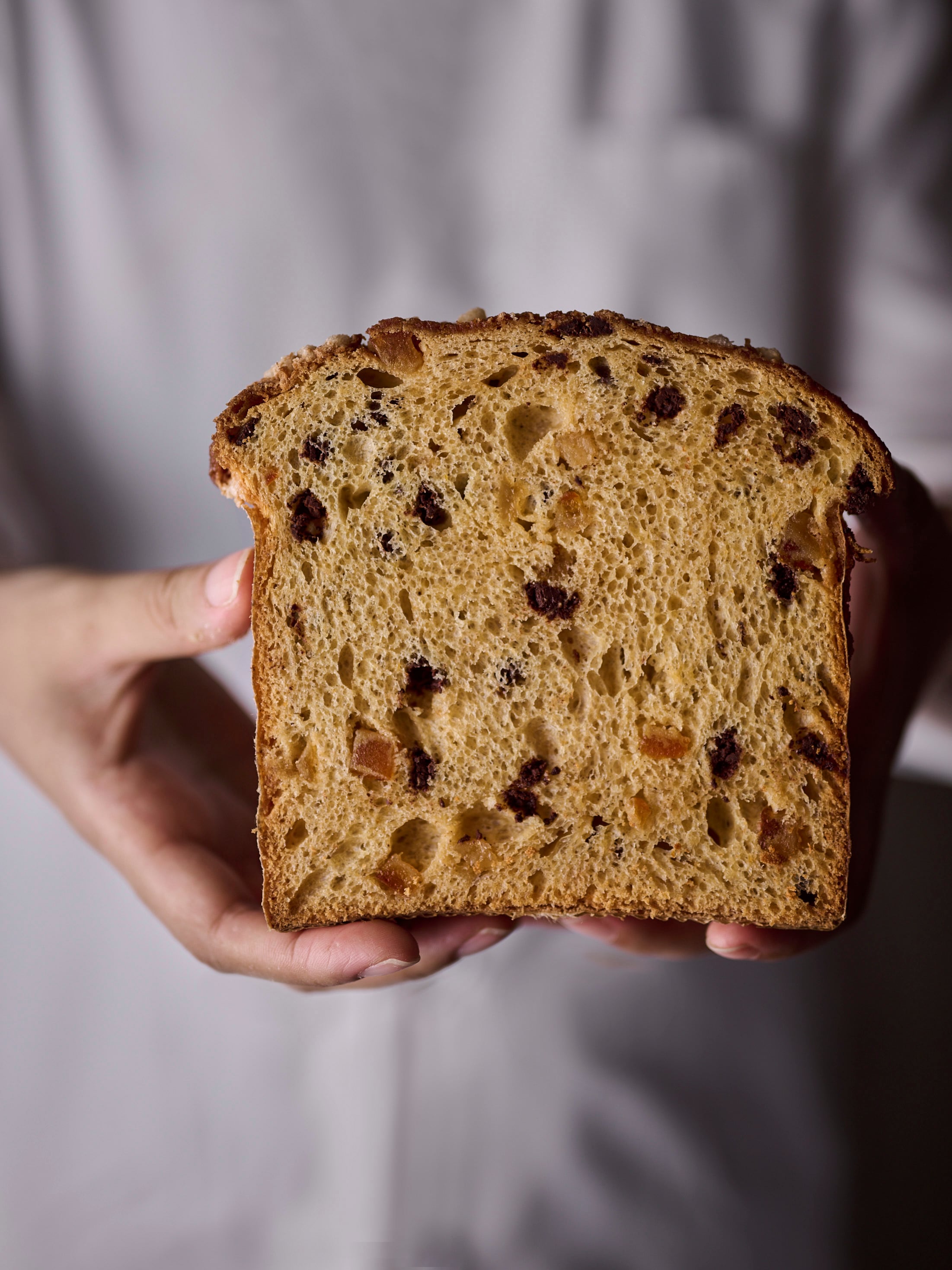 パネットーネ種と自家製酵母を使用した、ふんわりしっとりとした食感のパネットーネ。