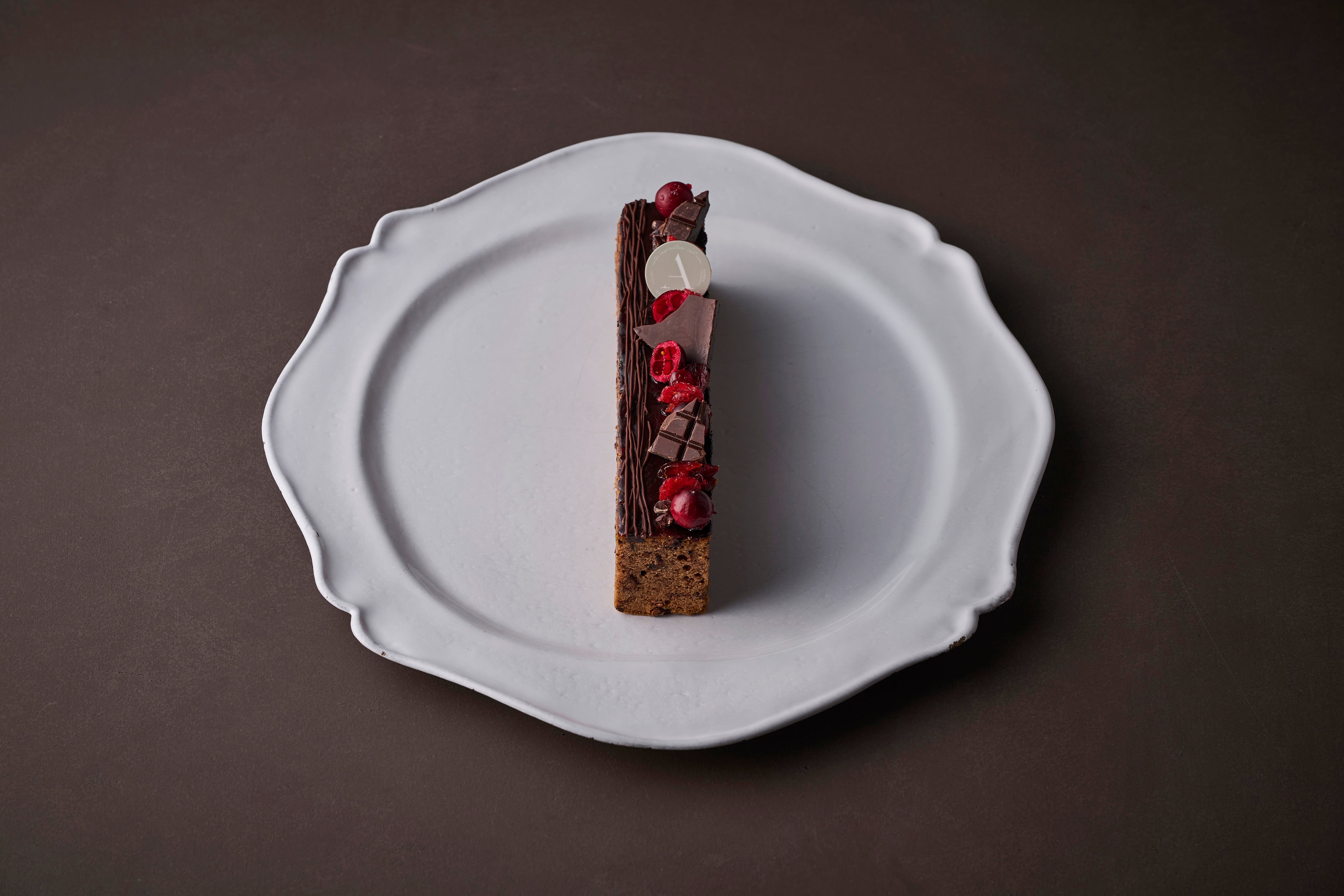 スパイスで漬け込んだ干し柿を焼き込み、しっとりと仕上げた生地に、生チョコを重ねました。