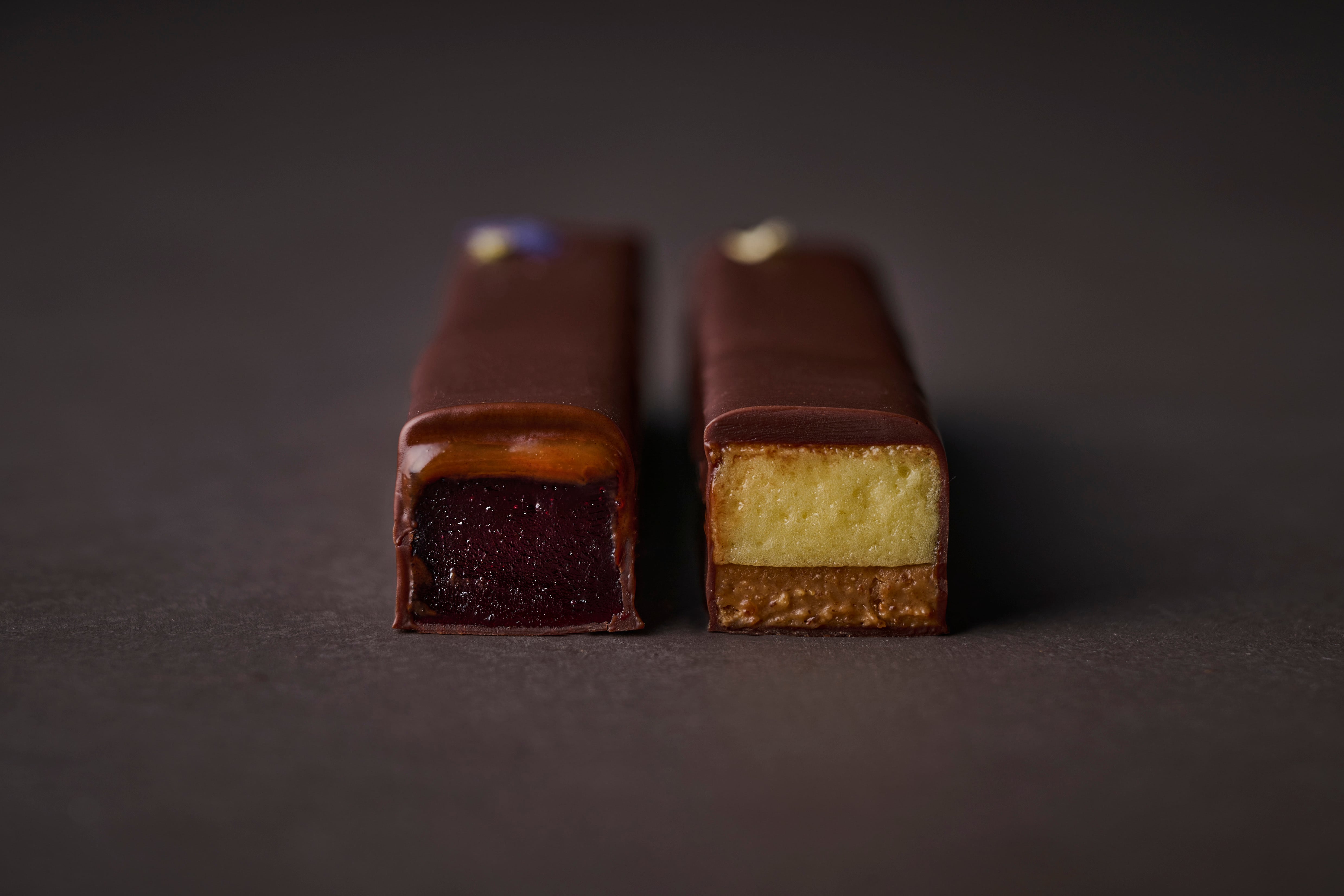 パリッとしたチョコレートコーティングの中に、異なる味わいと食感の層を丁寧に重ねました。コーティングの中に広がる、色鮮やかな世界。二つのフレーバーそれぞれに異なる、味わいの広がりをお楽しみください。