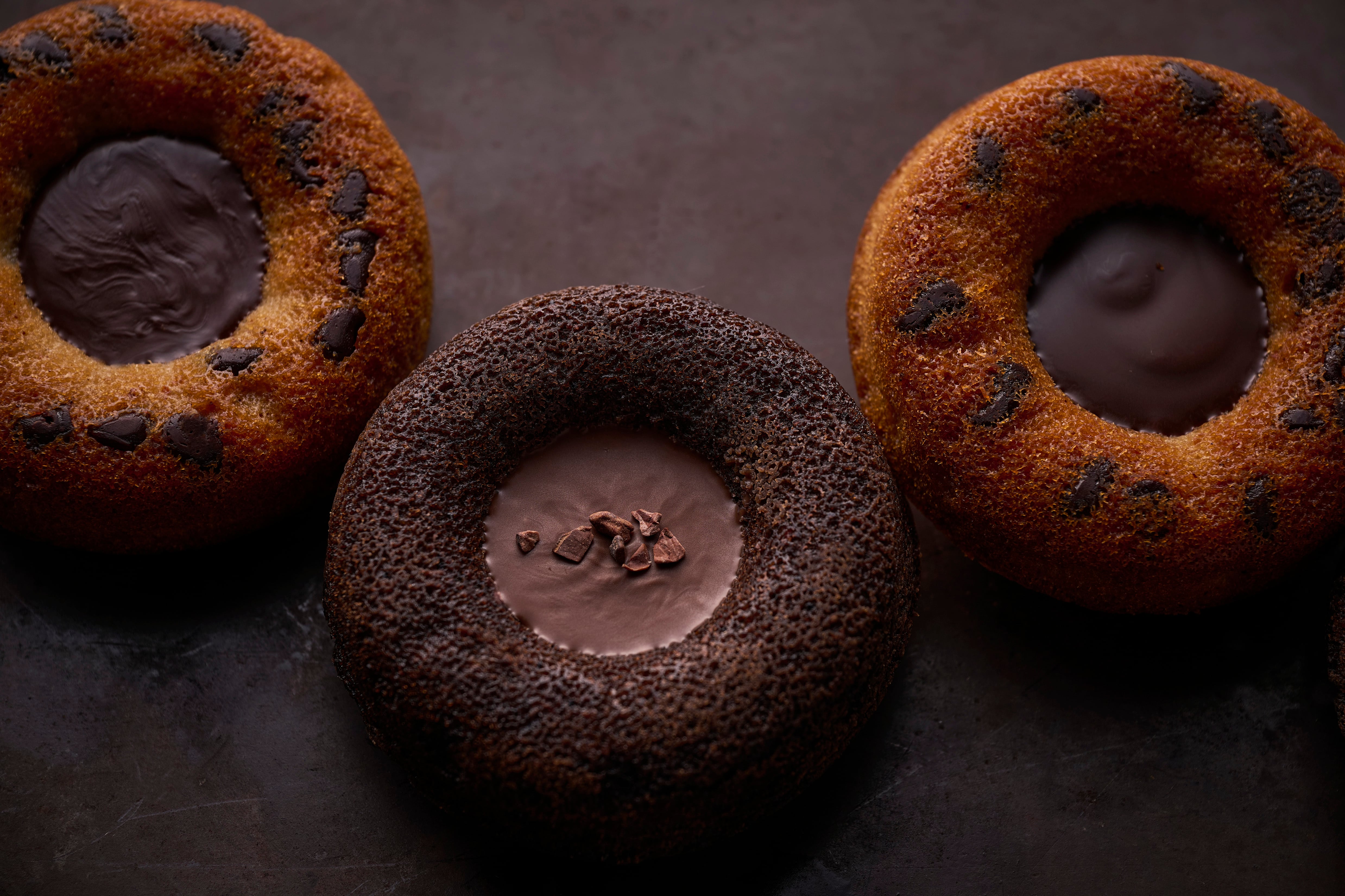 ショコラ生地にチョコチップを焼き込みミルクチョコレート流しこみカカオニブを散らしました。