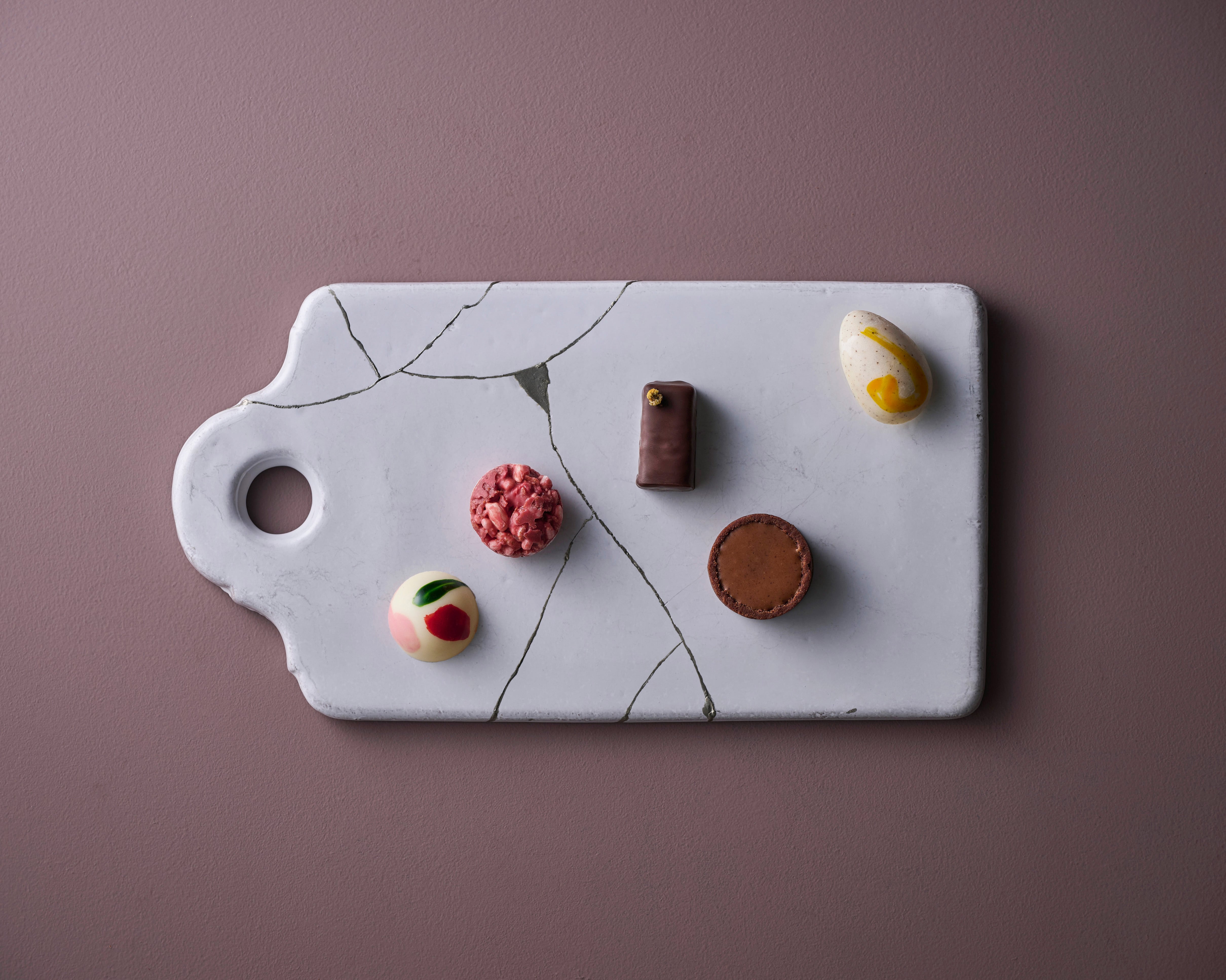 味わいもかたちも様々なチョコレートの詰め合わせ。