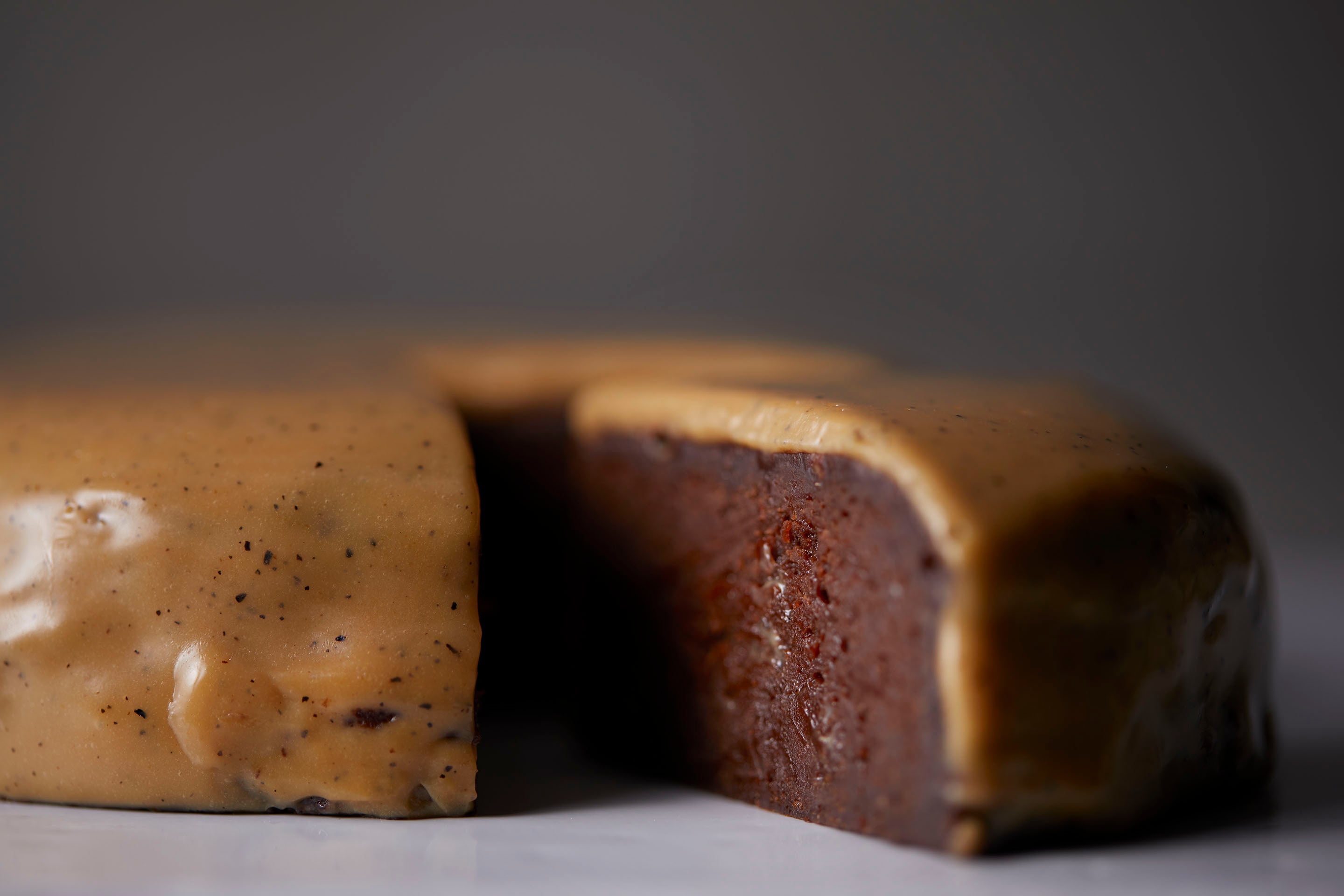 口溶けの良いテリーヌショコラにほんのり紅茶の香りを加え、キャラメル風味のグラサージュで仕上げました。
