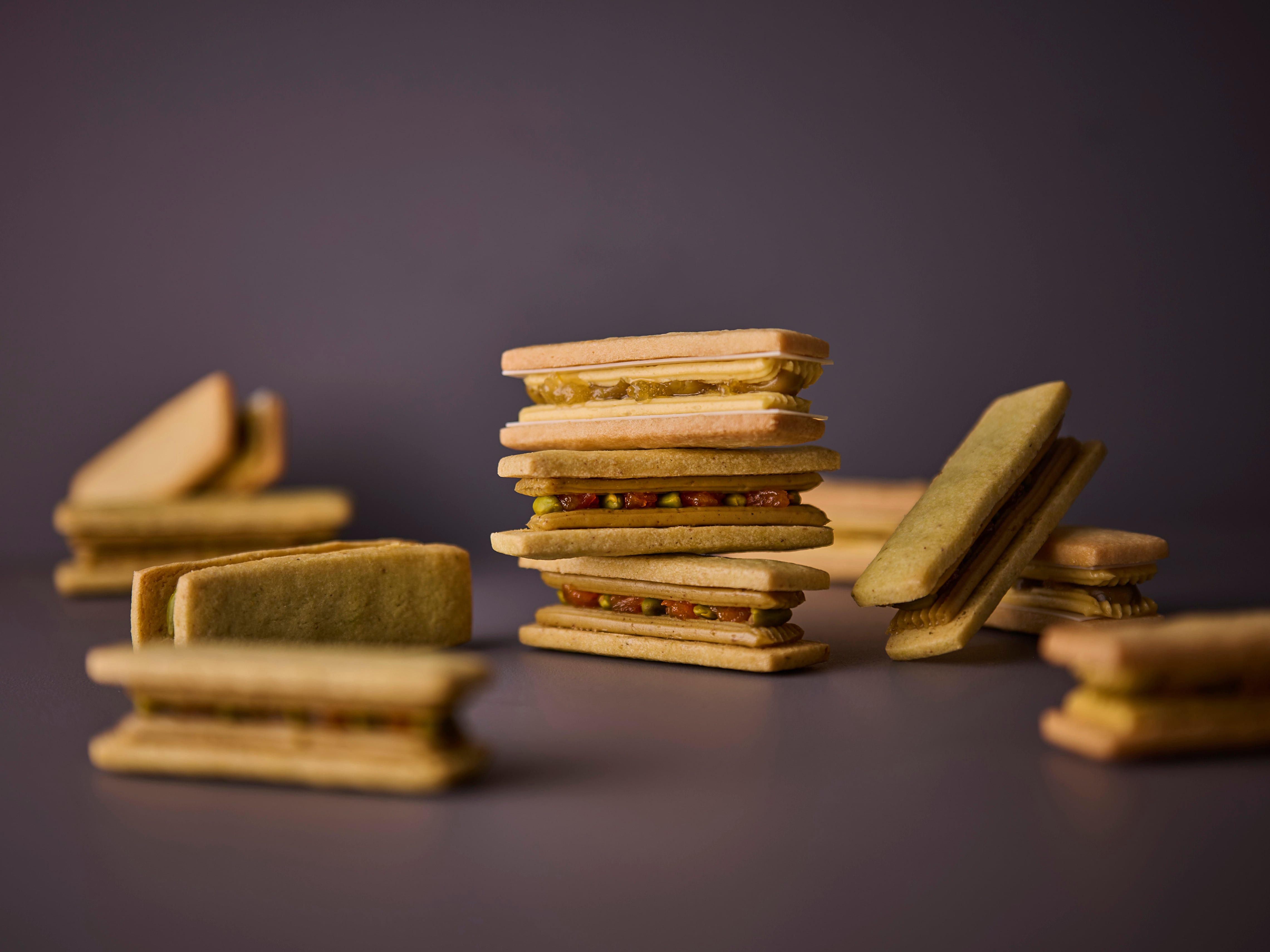 オレンジの爽やかな酸味とほろ苦さに、ピスタチオのコクを重ねたバターサンド。軽やかで奥行きのある味わい。
