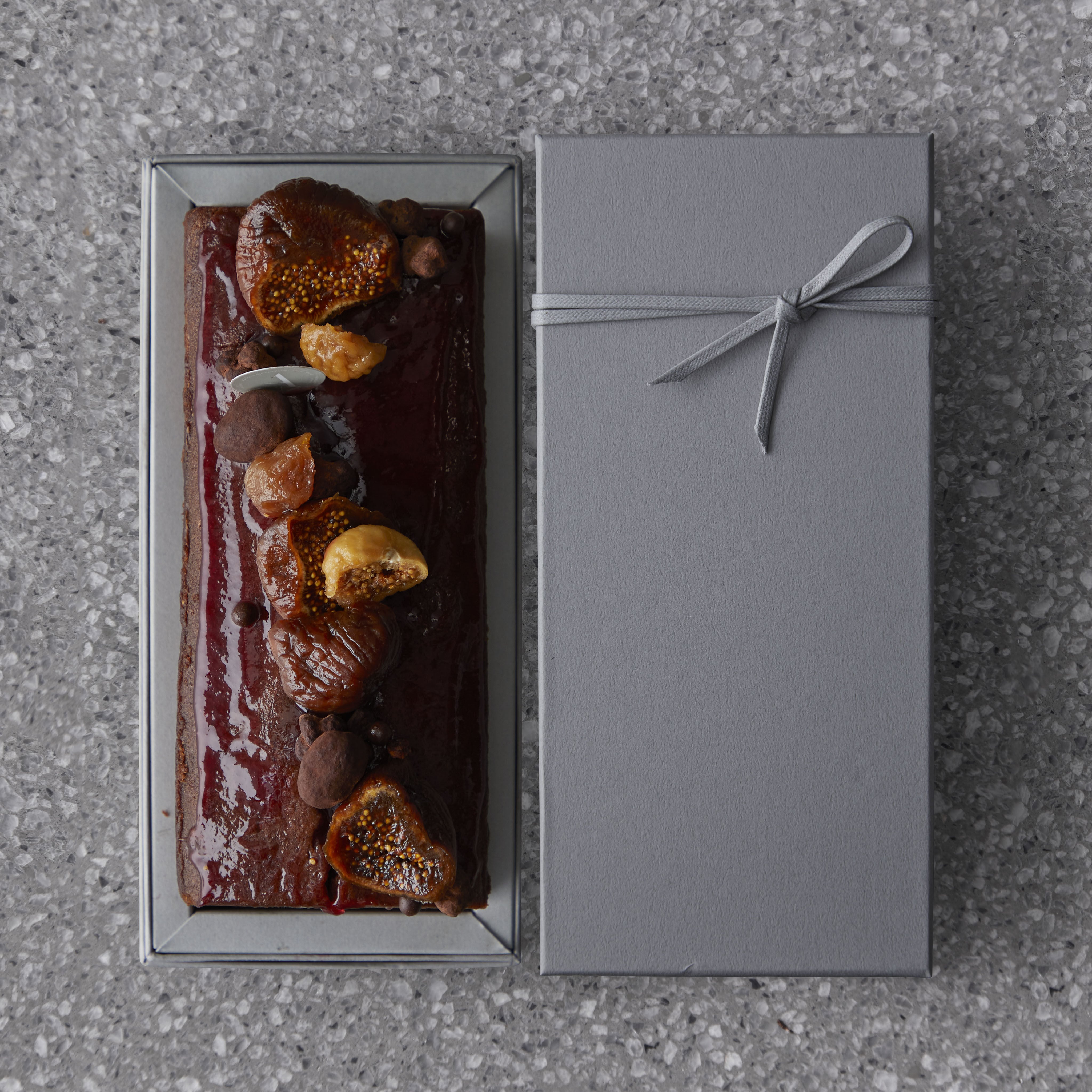 ケークショコラにセミドライいちじくの赤ワイン煮を丸々中に焼き込みました。ヴァンショーシロップをたっぷり染み込ませました。